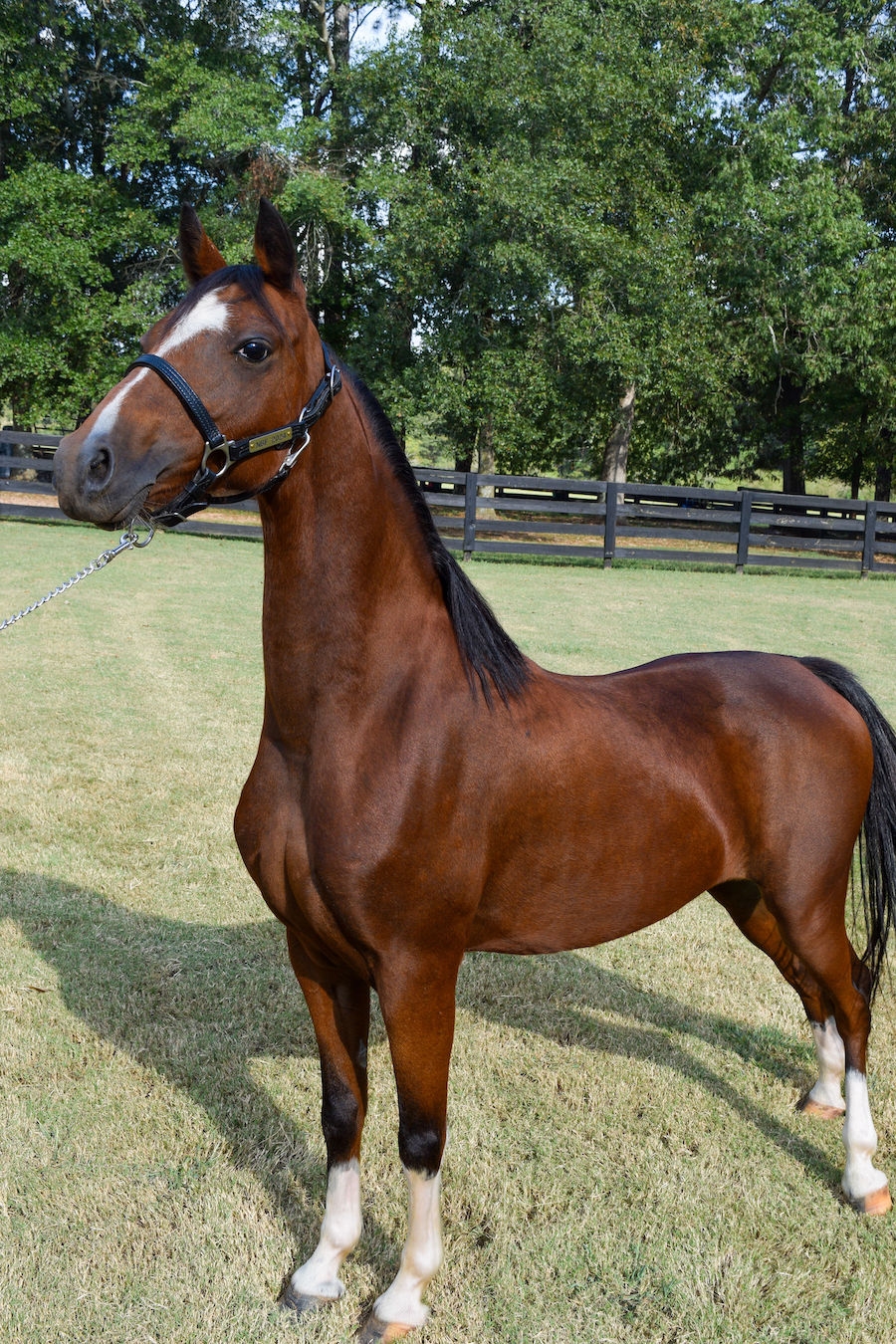 MARKINGS: Large irregular star connecting to stripe offset left continuing to snip bordering left nostril; LF stocking, white; RF full sock, white; LH & RH full ankle, white
