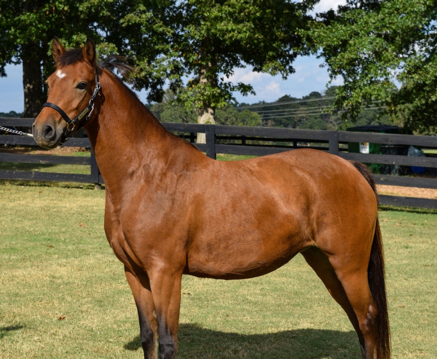 MARKINGS: Small irregular star, snip bordering right nostril; LF pastern, white; LH pastern, white; RH ankle higher in front, white