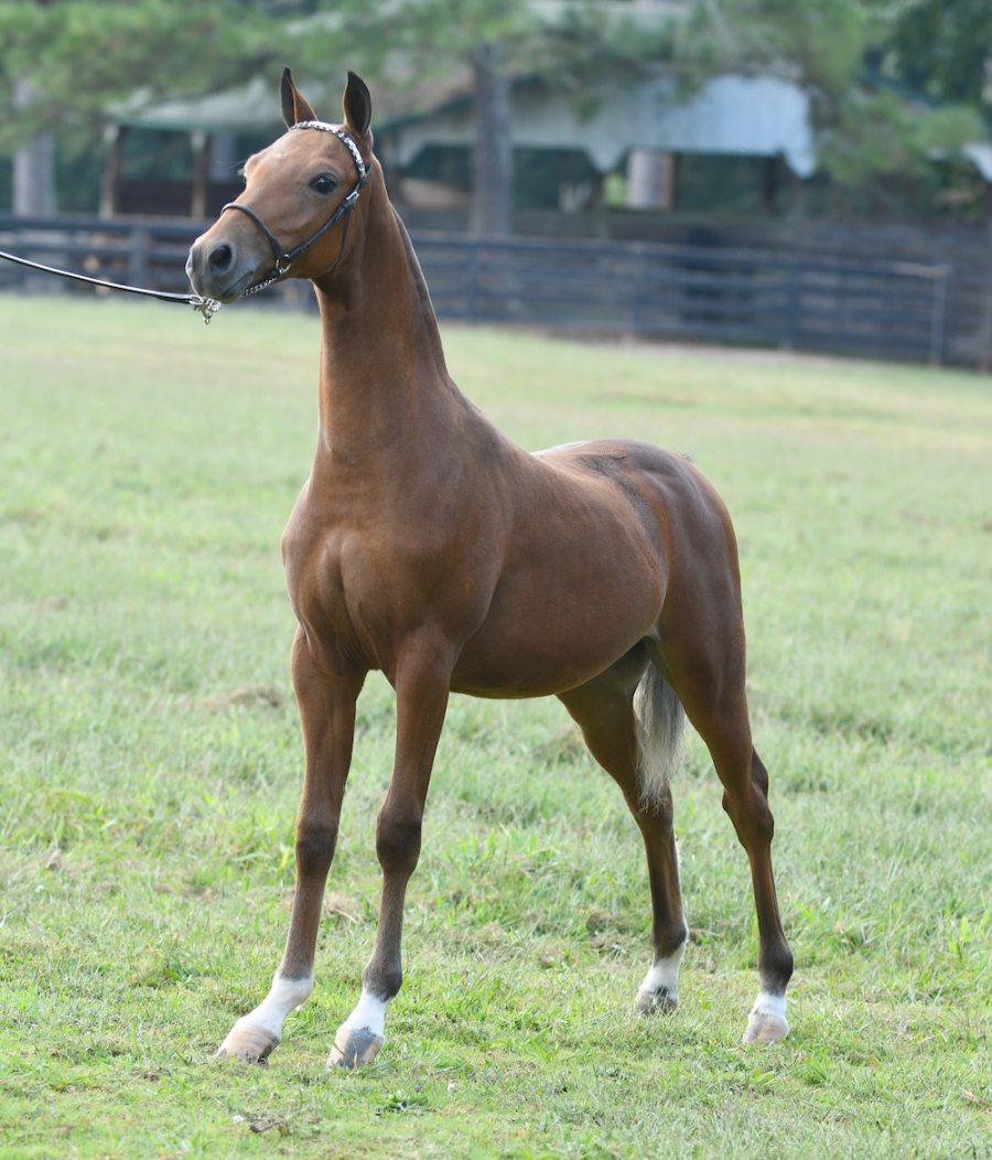 MARKINGS: Small star between eyes; LF & RF full pastern, white; LH & RH full pastern, white
