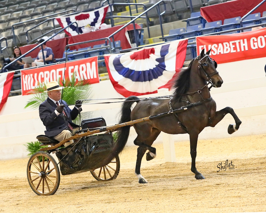 CONSIGNOR'S STATEMENT: Crystal Creek's Night Court is a four-year-old gelding by WGC CHDun-Haven Phenomenal. Night Court has been showing very successfully this year as a pleasure driving pony, earning top ribbons all over the South. He also received nice ribbons at the World's Championship Horse Show in the junior park pleasure classes. Night Court is broke, broke, broke, and ready for an amateur or junior exhibitor.