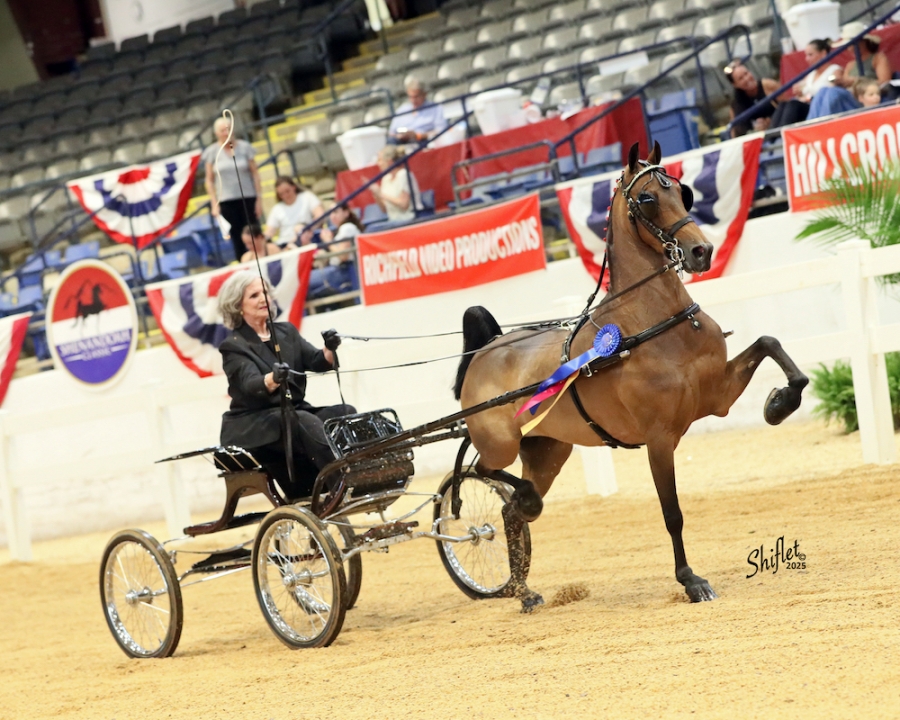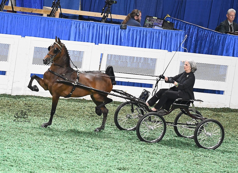 CONSIGNOR'S STATEMENT: One of the truly great amateur Hackney ponies showing, Crystal Creek's All Right has been a winner all over the south. She has really come into her own this year, winning the amateur classes at both The Shenandoah Classic and the Asheville Saddlebred Classic. Plus, she earned top ribbons at the World's Championship Horse Show. She also has a very impressive record in open classes. If not for a complete dispersal, such a grand mare would not be available. Let her carry you to the top.