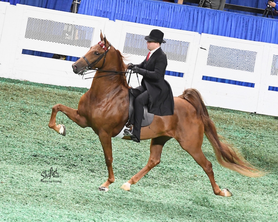 CONSIGNOR'S STATEMENT: Beautiful, game, and sound, Front Page Look never backs an ear, at home or at shows. Shown successfully with wins at top shows, Page racks true, is fun to ride, and has a wonderful work ethic and comes out ready to please, every day. A half sister to WC I'm Lookin' Expensive, Front Page Look is by RWC sire I'm Lookin. She has three crosses to WGC sire WGC CHWill Shriver on her dam side. This pretty mare is a true gaited horse, ready for trainers, amateurs, and juveniles who are ready to ride and win.