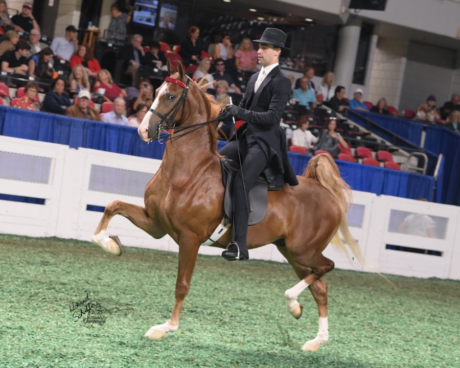 CONSIGNOR'S STATEMENT: Already a multi WC, All Together Now is an exceptional two-year-old with unlimited potential. He earned his titles winning the ASHBA National Futurity Two-Year-Old Three-Gaited division and National Amateur Futurity Two-Year-Old In Hand. He also looks great pulling a buggy and is entered in the Bill Wise Sweepstakes at Kansas City, giving his new owner a great opportunity for immediate return on investment. This wonderful colt is as great thinking as he is beautiful. His training has come easily to him, and he loves his job and the life of being a show horse. And he is bred to be what he is. He is by the legendary multiple WGC sire Undulata's Nutcracker and his dam, Destiny's Glory Hallelujah, is a full sibling to WC Hallelujah Chorus (BHF), making him a full blood brother to WCC Hallelujah Moment, WC Ethereal Love, RWC Sing It Out and National Champion Save The Day. This is indeed a rare opportunity to own a future superstar available at public auction.