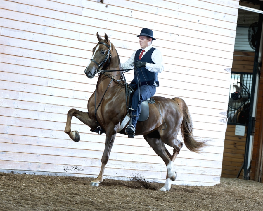 CONSIGNOR'S STATEMENT: Here is an up-fronted, great-thinking prospect for the park or park pleasure divisions. Stone Gate's Champagne At Midnight is well along in his training. He is a willing and talented student and is well broke to ride and drive. He should finish nicely over the winter and be ready for the spring shows. By the popular young sire Dark Pegasus, he has some great old breeding on his dam's side, with his dam being by WCC sire RWC Star Material and his second dam by WCC sire Champagne Fizz.