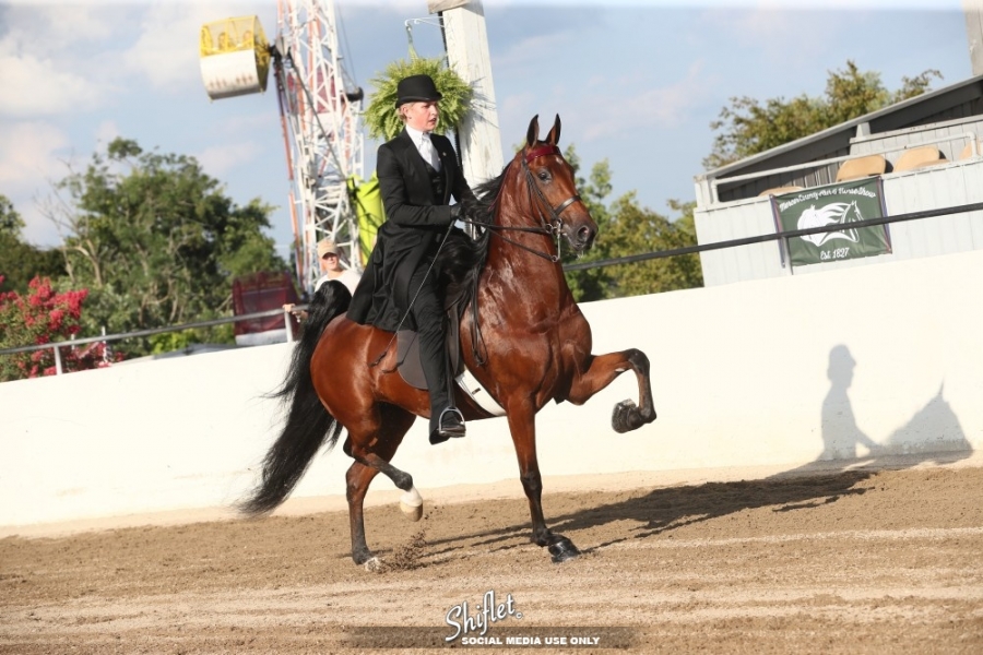 CONSIGNOR'S STATEMENT: Kimilee Bryant HSB is a gifted four-year-old daughter of the popular WC CHChristine Daae. She is by the well bred Riverdreams Black Pearl and she is a half sister to WC Kiss Of The Phantom HSB. Her dam is a full sister to RWC My Angel Of Music HSB and to up and coming sire I'm Jean Valjean, already sire of WC Broadway Agent HSB. This royally bred mare is as bright and athletic as they come. She has shown successfully in junior park this year and her journey has only just begun.