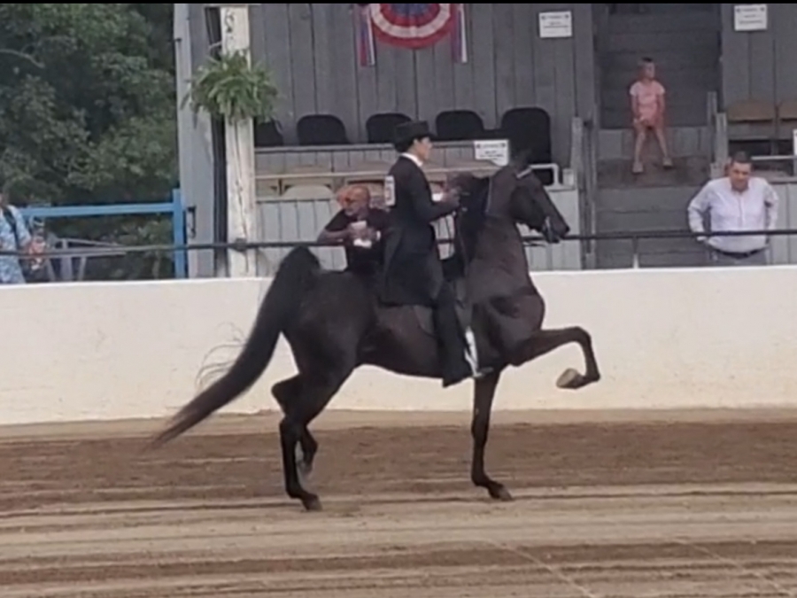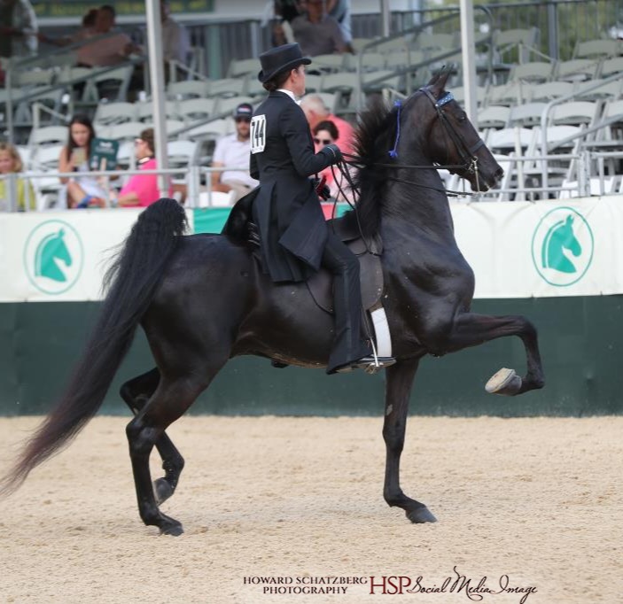CONSIGNOR'S STATEMENT: Cirrus Goldenegro is a beautiful black gelding with a great show record. He showed eight times last year earning three championships and four reserves on the tough Kentucky circuit as a junior park horse. Also winning the park class at All American, he's truly great young horse with many options: park, three gaited, or even maybe the very best three-gaited pleasure horse. Goldenegro is also a very smart horse that could equitate in a heartbeat ... a truly outstanding young black horse.