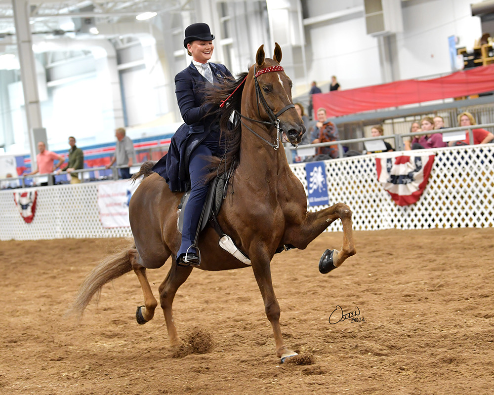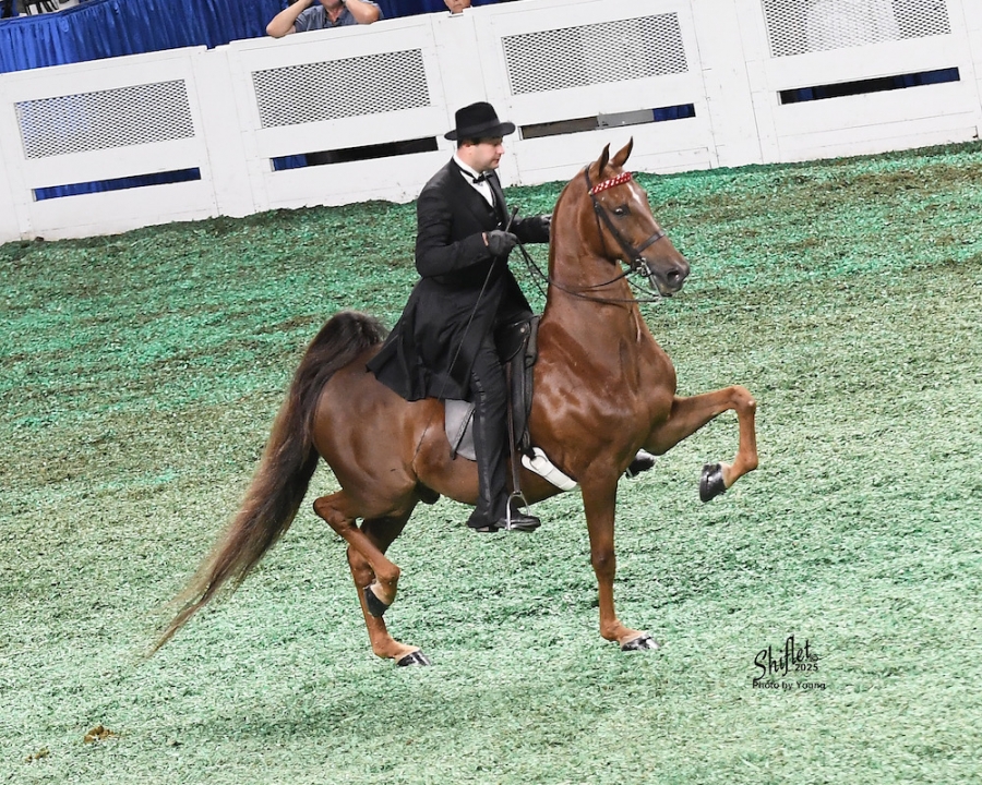 CONSIGNOR'S STATEMENT: Just Can't Get Enough is a Multi Titled World Champion. He won the 3 Gaited 2 Year Old class in 2018, the 3 Gaited Park Junior Horse and Championship in 2019 as a 3 Year Old, and Reserve World Champion of Champions in the Park Pleasure Junior Championship in 2020 at the World's Championship Horse Show. He has been shown in Park, Park Pleasure, Show Pleasure, and most recently 3-Gaited. Earning Third in the 3-Gaited Over 15.2 Stake this year at the World's Championship Horse Show. He has been successfully shown by an Amateur and Junior Exhibitor.